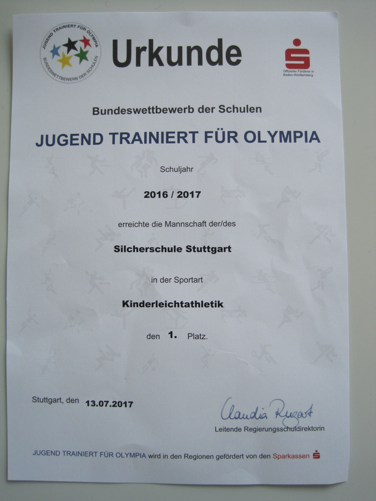 Am frühen Morgen des 18. Juni 2015 machten sich zehn Mädchen und zwölf Jungen der Klassen 3 und 4 der Silcherschule in Stuttgart-Rot zusammen mit ihren Sportlehrern Frau Andriana Zelenika und Herrn Matthias Kleiner auf den Weg nach Bad Cannstatt zu „Jugend trainiert für Olympia“. Die talentierten Jungen und Mädchen zeigten zahlreiche persönliche Bestleistungen. Diese waren sicherlich auch ein Ergebnis des tollen Zusammenhaltes der beiden Mannschaften. Bei jeder Gelegenheit feuerten sich Mädchen und Jungen gegenseitig lautstark an. Am Ende siegte die Jungenmannschaft mit einem deutlichen Vorsprung, die Mädchenmannschaft verpasste nur um einen Punkt den zweiten Platz.