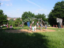 Auf dem großzügigen und grünen Pausenhof der Silcherschule bieten zahlreiche Spielgeräte viele Aktivitätsmöglichkeiten. | ![]() |
